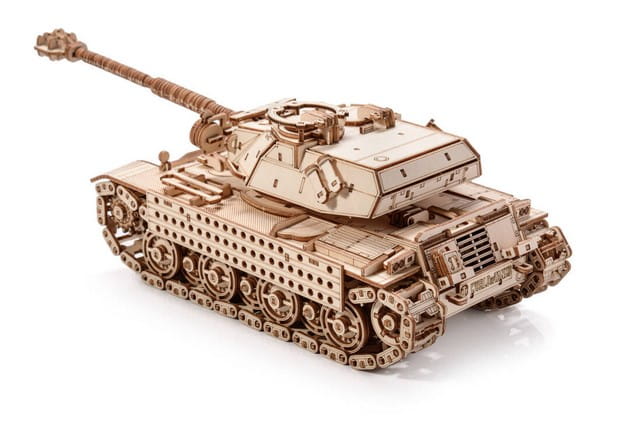 ⭐ Drewniane puzzle 3D w kształcie czołgu. Zestaw został wykonany z wysokiej jakości sklejki i jest w postaci arkuszy z wstępnie wyciętymi i ponumerowanymi elementami. Przed montażem należy oddzielić części od wykroju, a następnie połączyć bez użycia kleju, zgodnie ze szczegółową instrukcją dołączoną do opakowania. Zabawka edukacyjna, która po złożeniu może również służyć jako dekoracja. Uwaga - zestaw może zawierać małe elementy, podczas składania puzzli, dzieci muszą pozostać pod opieką dorosłych.