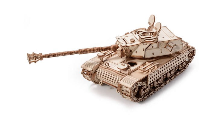 Drewniane puzzle 3D w kształcie czołgu Bat.-Chaitllon Bourvasque. Zestaw został wykonany z wysokiej jakości sklejki i jest w postaci arkuszy z wstępnie wyciętymi i ponumerowanymi elementami. Przed montażem należy oddzielić części od wykroju, a następnie połączyć bez użycia kleju, zgodnie ze szczegółową instrukcją dołączoną do opakowania. Zabawka edukacyjna, która po złożeniu może również służyć jako dekoracja. Uwaga - zestaw może zawierać małe elementy, podczas składania puzzli, dzieci muszą pozostać pod opieką dorosłych.
